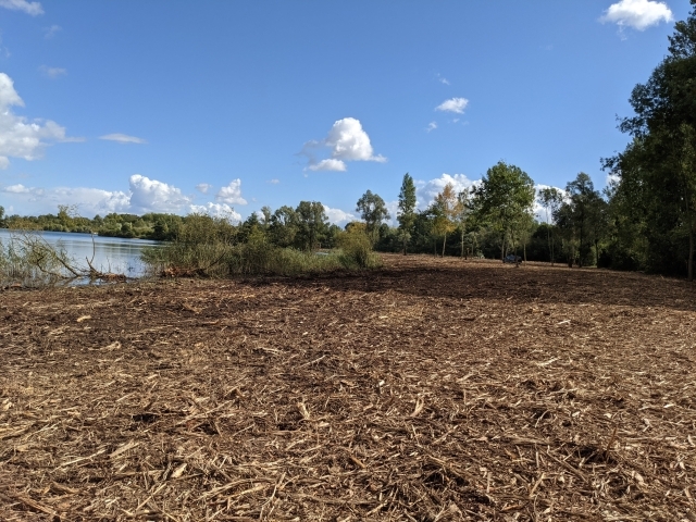 Photo du site Chancelard après défrichement et avant les travaux écologiques. Des arbres sont laissés sur site pour la diversité écologique ; dont nidification. (photo : EPTB)