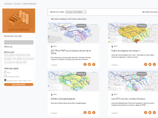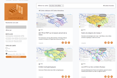 Une cartothèque proposant des cartes statiques (au format PDF, JPEG, PNG, etc.) et des cartes web interactives