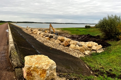 Travaux - Digues de la Morge, Beaumont et Chavaudon Les premiers travaux des digues de La Morge, Beaumont et Chavaudon sur le lac d'Orient sont en cours