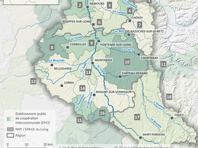 Son périmètre reposait sur le secteur hydrographique du bassin versant du Loing, soit 18 EPCI-FP et 266 communes pour une population de près de 276 000 habitants.