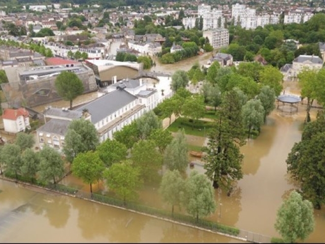- en haut, les crues de 2016 à Montargis, par l'EPAGE du Loing