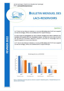 Bulletin hydrologique mensuel février 2022 1 document Publié le 9 mars 2022 Le 1er février les lacs-réservoirs totalisent un volume de 390 millions de m³ (48 % de la capacité normale de stockage), inférieur de 12 millions de m³ à l’objectif théorique. 2022-02_bulletin-mensuel-des-4-lacs-reservoirs.pdf PDF-2.44 Mo Téléchargement Precedent Retour à la liste Suivant