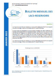 Bulletin hydrologique mensuel janvier 2022 1 document Publié le 9 février 2022 Le 1er janvier les lacs-réservoirs totalisent un volume de 271 millions de m³ (34 % de la capacité normale de stockage), supérieur de 6 millions de m³ à l’objectif théorique 2022-01_bulletin-mensuel-des-4-lacs-reservoirs.pdf PDF-2.15 Mo Téléchargement Precedent Retour à la liste Suivant