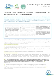 Communiqué de presse 02-02-2022 - Signature d'un protocole d'accord d'indemnisation des agriculteurs du site pilote de la Bassée