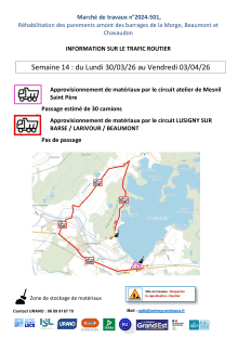 Info circulation - Semaine 14 - Trafic routier des engins de chantier - Travaux des digues de la Morge, Beaumont et Chavaudon