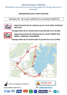 Info circulation - Semaine 20 - Trafic routier des engins de chantier - Travaux des digues de la Morge, Beaumont et Chavaudon