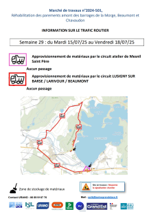 Info circulation - Semaine 29 - Trafic routier des engins de chantier - Travaux des digues de la Morge,Beaumont et Chavaudon