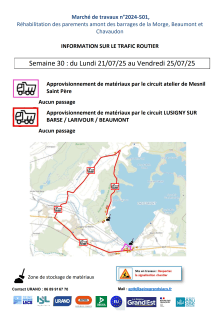 Info circulation - Semaine 30 - Trafic routier des engins de chantier - Travaux des digues de la Morge, Beaumont et Chavaudon