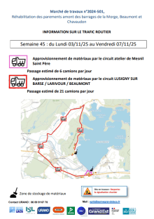Info circulation - Semaine 45 - Trafic routier des engins de chantier - Travaux des digues de la Morge, Beaumont et Chavaudon