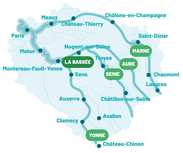 Le périmètre d’intervention de Seine Grands Lacs est le bassin versant amont de la Seine (incluant ses affluents : la Marne, l’Aube et l’Yonne). Il est délimité au nord par celui de l’EPTB Oise-Aisne, à l’est et au sud, par les limites du district Seine-Normandie, et à l’aval par les limites du SAGE Mauldre et de l’unité hydrographique de la Seine Mantoise. Ce périmètre, immense, couvre 19 départements et 4 régions ; faisant de Seine Grands Lacs un acteur majeur de l’eau sur ce territoire.