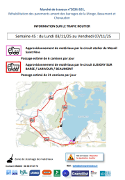 Info circulation - Semaine 45 - Trafic routier des engins de chantier - Travaux des digues de la Morge, Beaumont et Chavaudon