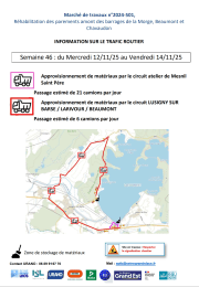 Info circulation - Semaine 46 - Trafic routier des engins de chantier - Travaux des digues de la Morge,Beaumont et Chavaudon